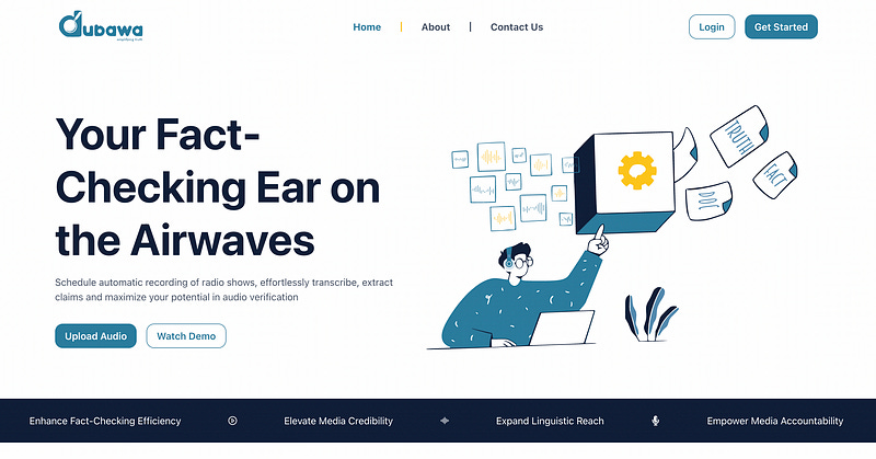 From the outset, Dubawa Audio AI aimed to address two core functionalities: transcribing radio shows by automatically converting audio into text, which could be archived and referenced later, and claim extraction to identify specific statements from radio broadcasts that require fact-checking.